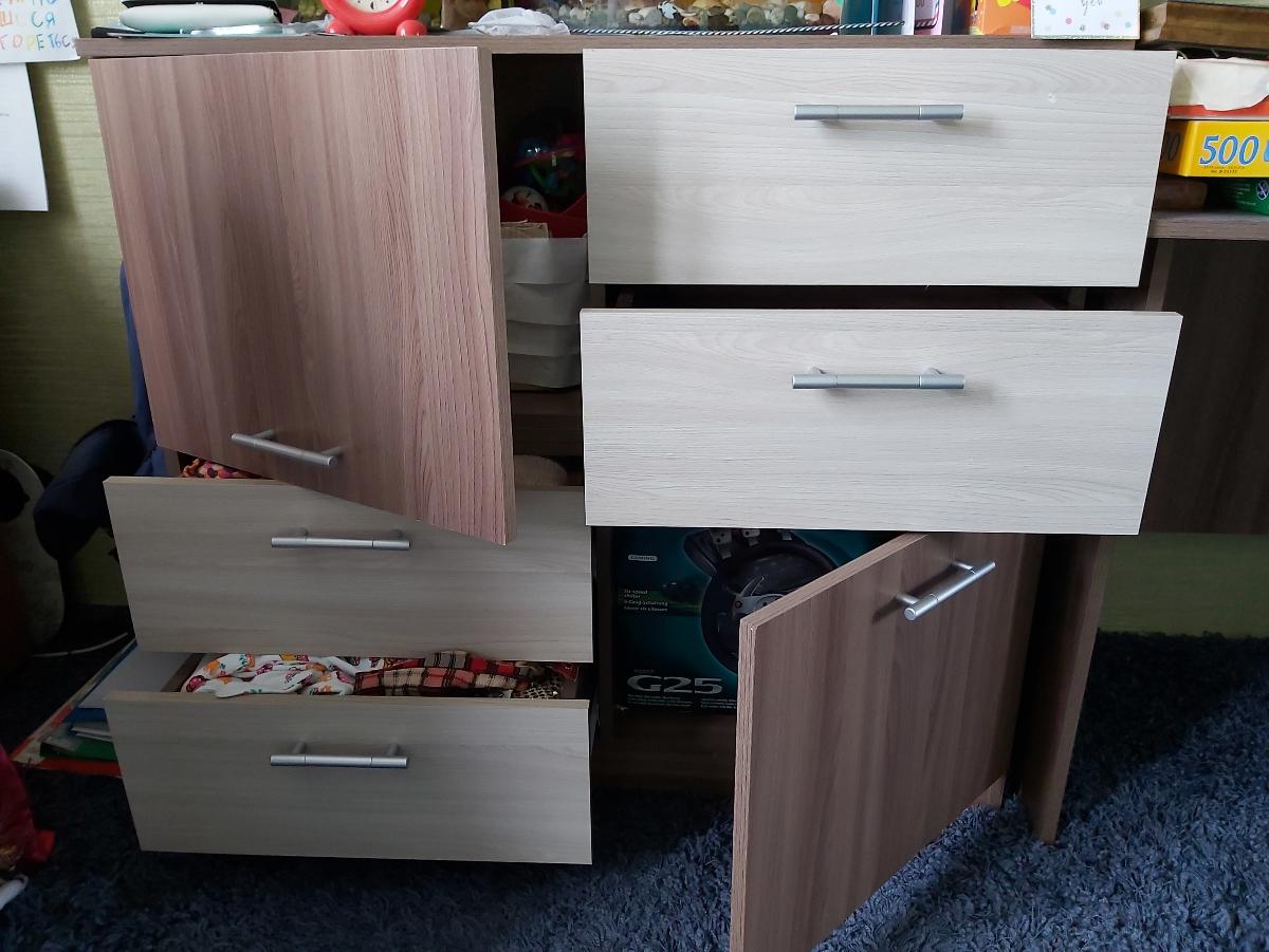 Заказала комод в детскую. Очень понравилась возможность выбора: свои размеры, цвет фасадов, разные ручки - пожалуйста! В итоге скомбинировала светлый и темный ясень - получилось красиво! Все привезли вовремя и я стала думать, кто же будет собирать мой комод? Денег лишних, понятно, нет. Развернула детали, а они все размечены, дырки просверлены, инструкция с картинками! В общем, собрала сама, за это отдельное спасибо!