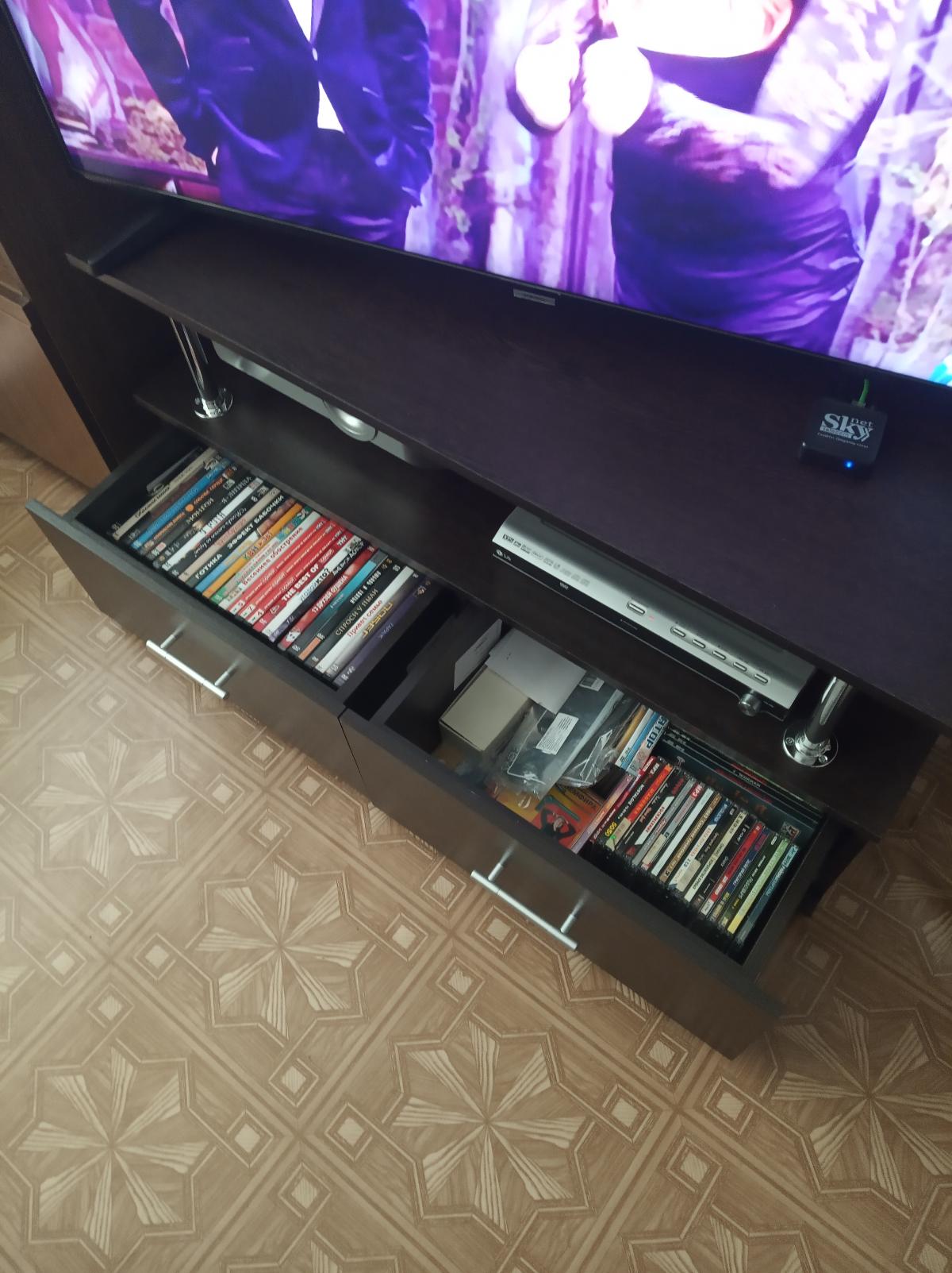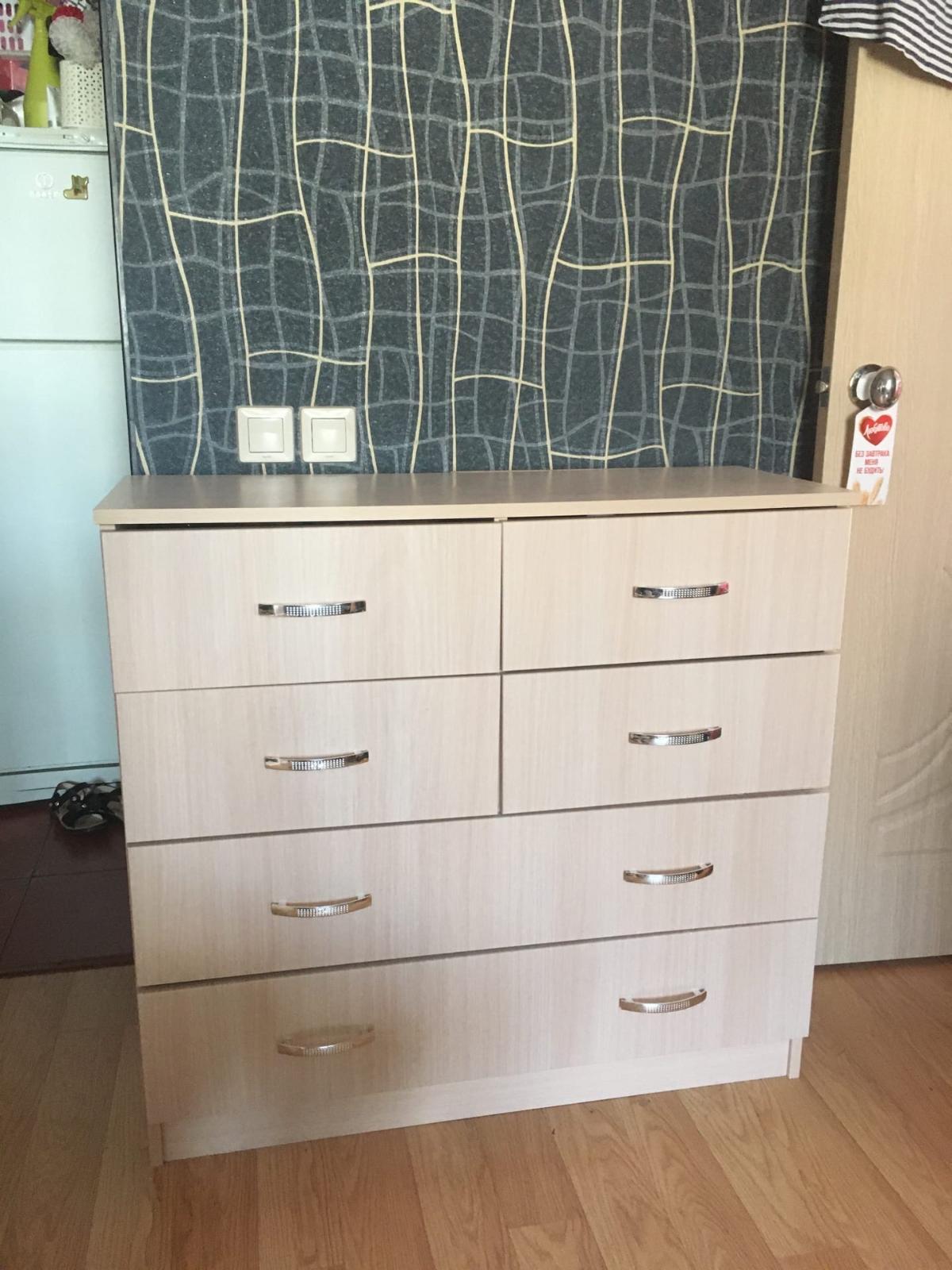 Шкаф нас удивил. Он оказался длинным и тонким (НЕ таким широким и коротким как на ваших картинках). Матового стекла в нем тоже нет. Он весь деревянный (или что там за материал). Мы думали хранить в нем папки, но они, конечно же, НЕ везли. В итоге мы приспособили его под детские вещи и, в целом, довольны. Смотрится стильно, как видите на фото (сверху лежит рамочка, не обращайте внимания). Убираться очень удобно, когда мебель висит. Благодаря вашей компании столы у нас тоже навесные и мы счастливы)