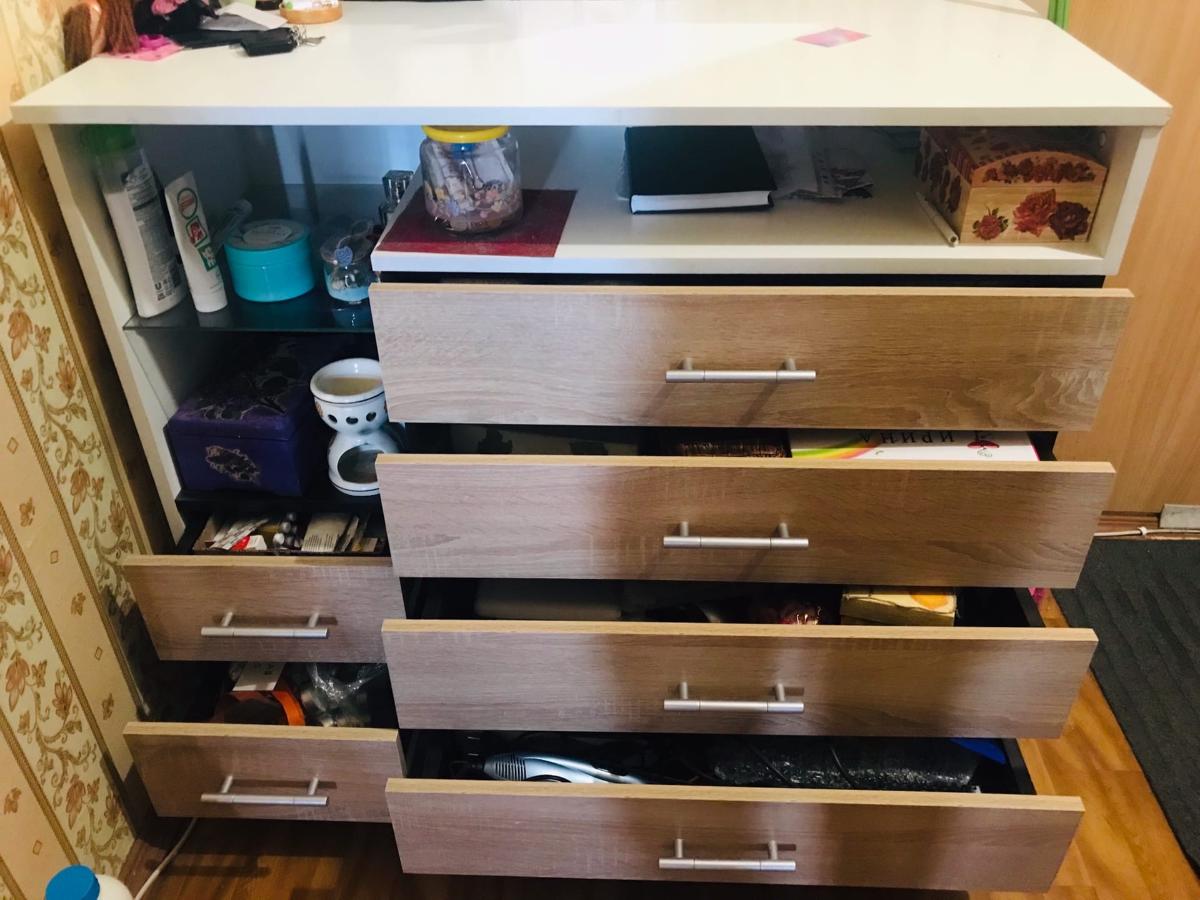 Заказ 341280 от 15.01.2020 1 Комод Турин BMSЗаказывали под свои размеры. Представитель магазина связался сразу для уточнения заказа. Доставка была осуществлена менее, чем через неделю после оформления. Комод привезли в четырех коробках, все тщательно упаковано. Документы все заполнены, что сейчас встречается далеко не во всех магазинах. Со сборкой проблем не возникло, собирали сами, инструкция не подробная, но понятная, каждая деталь комода подписана. Стеклянная полочка была аккуратно упакована. Комод очень удобный, ящики низкие, но глубокие. Множество ящиков и полочек в итоге вмещает очень большое количество вещей.