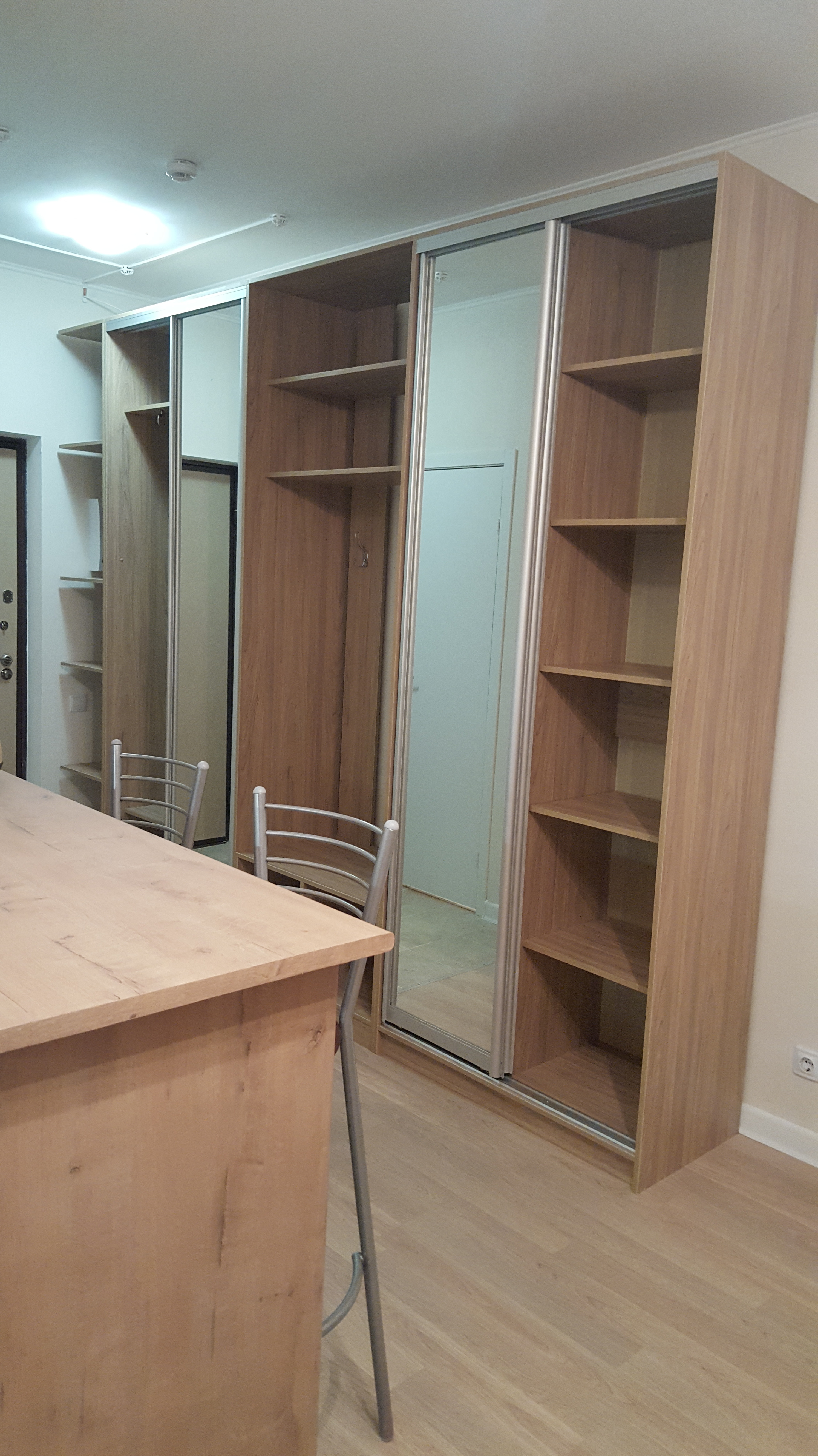 Искали бюджетный вариант. Все встроенные шкафы стоили от 80т. выглядят при этом намного хуже.Шкаф доставили в срок, все подняли, проверили на месте целостность зеркал. Сборщики собрали  быстро и без "косяков" Все супер, будем заказывать здесь еще