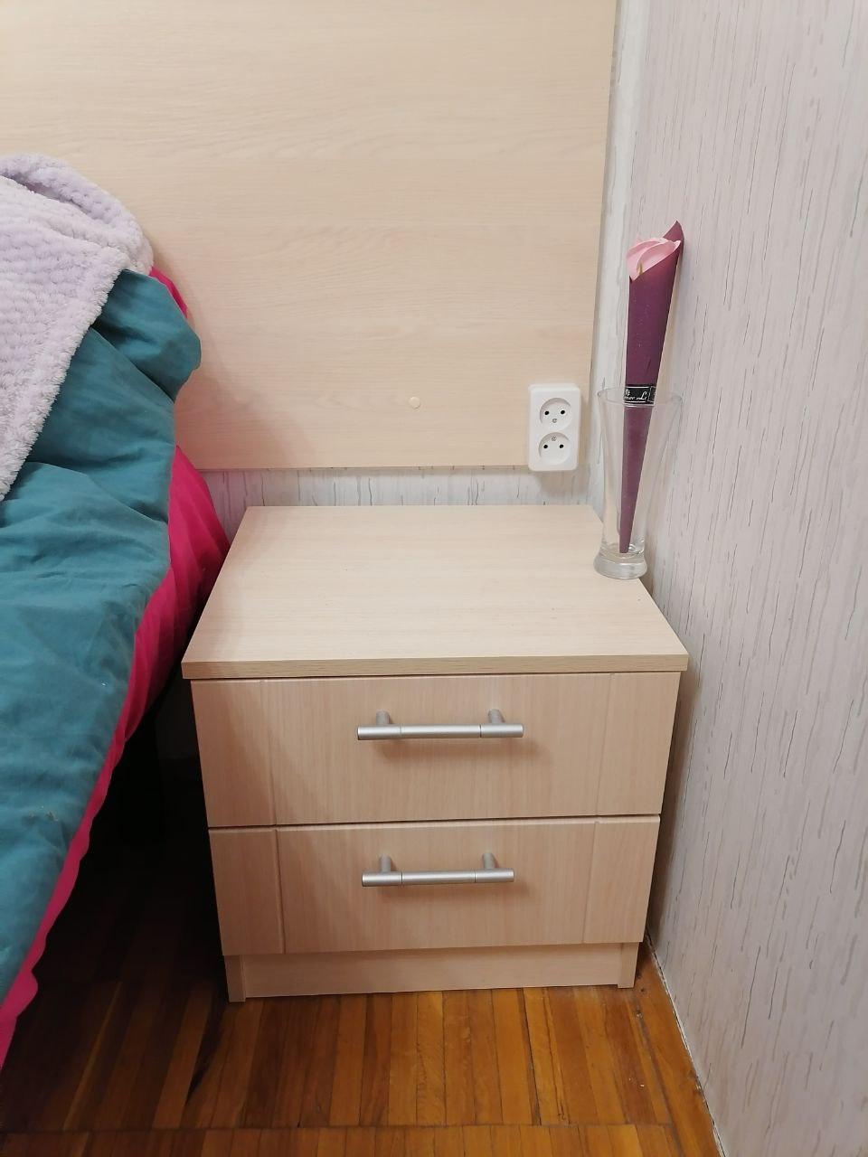 Замечательная маленькая прикроватная тумбочка. Полки легко выезжают, собирается очень просто.