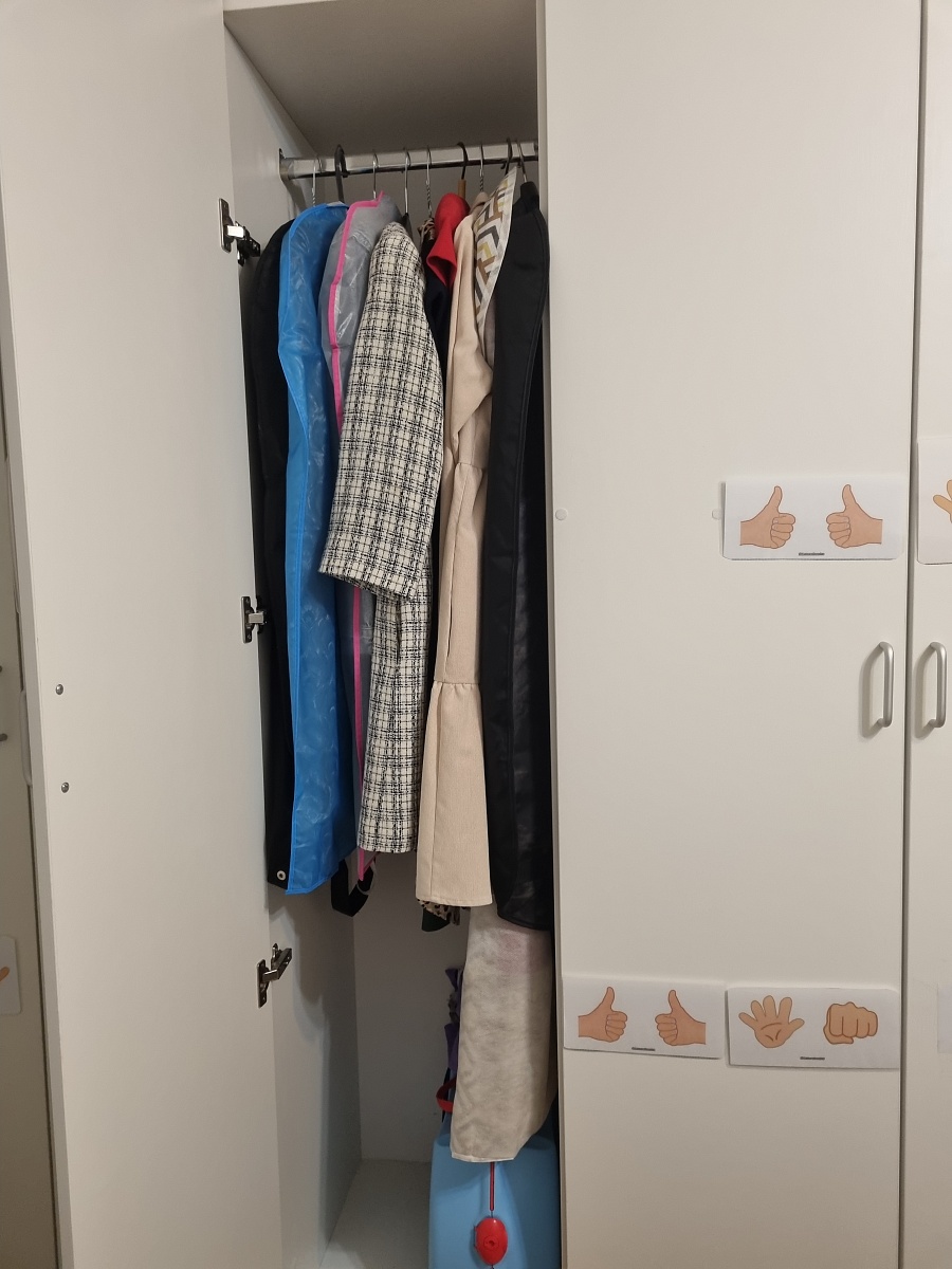 Заказ №1113680. Шкафом пользуемся больше года. Всем довольны. Удобно, что можно выбрать любое наполнение. Мне нужно было одно отделение, что бы вешать длинные платья и убирать гладильную доску. Все получилось, как я планировала. Ещё в одном отделении у меня 2 штанги. Удобно для брюк, блузок и рубашек. Всегда заказываю с хорошей кромкой. Так дороже, но качество гораздо лучше. Муж собрал шкаф сам без проблем