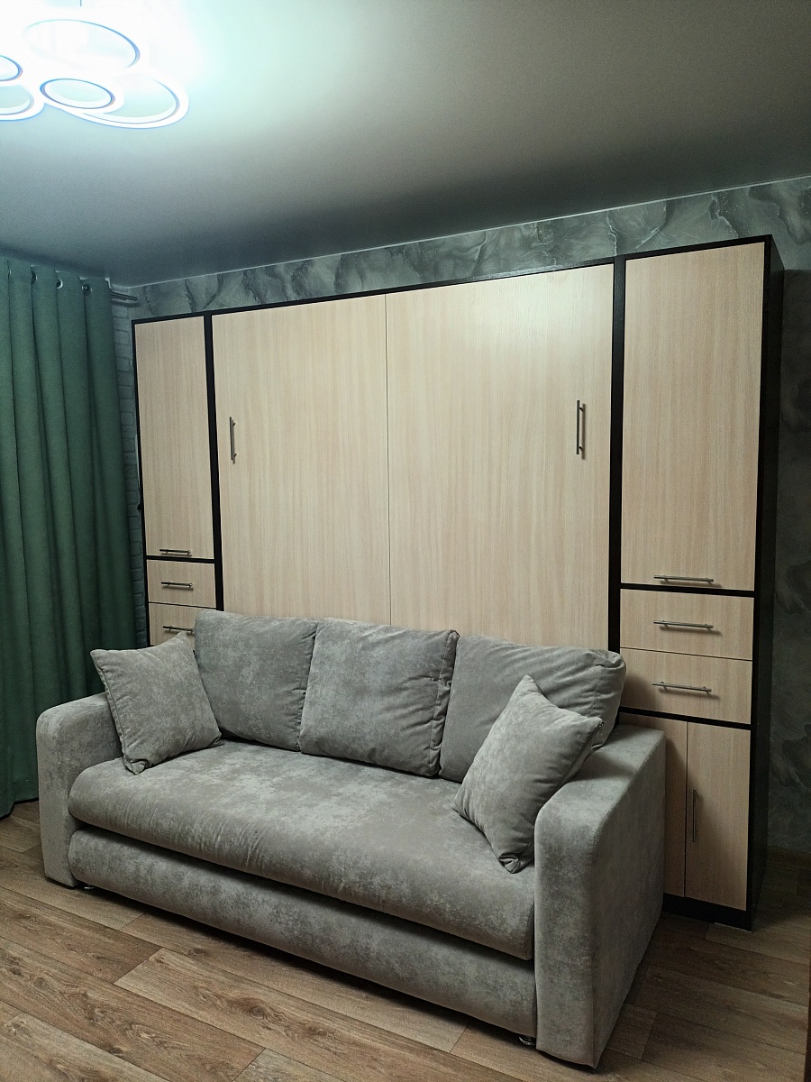 Шкаф-кровать Фердинан. Заказ пришел в срок  после подтверждения эскиза с конструктором. Сборка от магазина. Первая ночь прошла не без приключений, проспала на работу. Очень  комфортно  было спать.  Сиденье от дивана встает в нишу за кроватью, что не только очень удобно (не болтается по комнате) но и красиво.