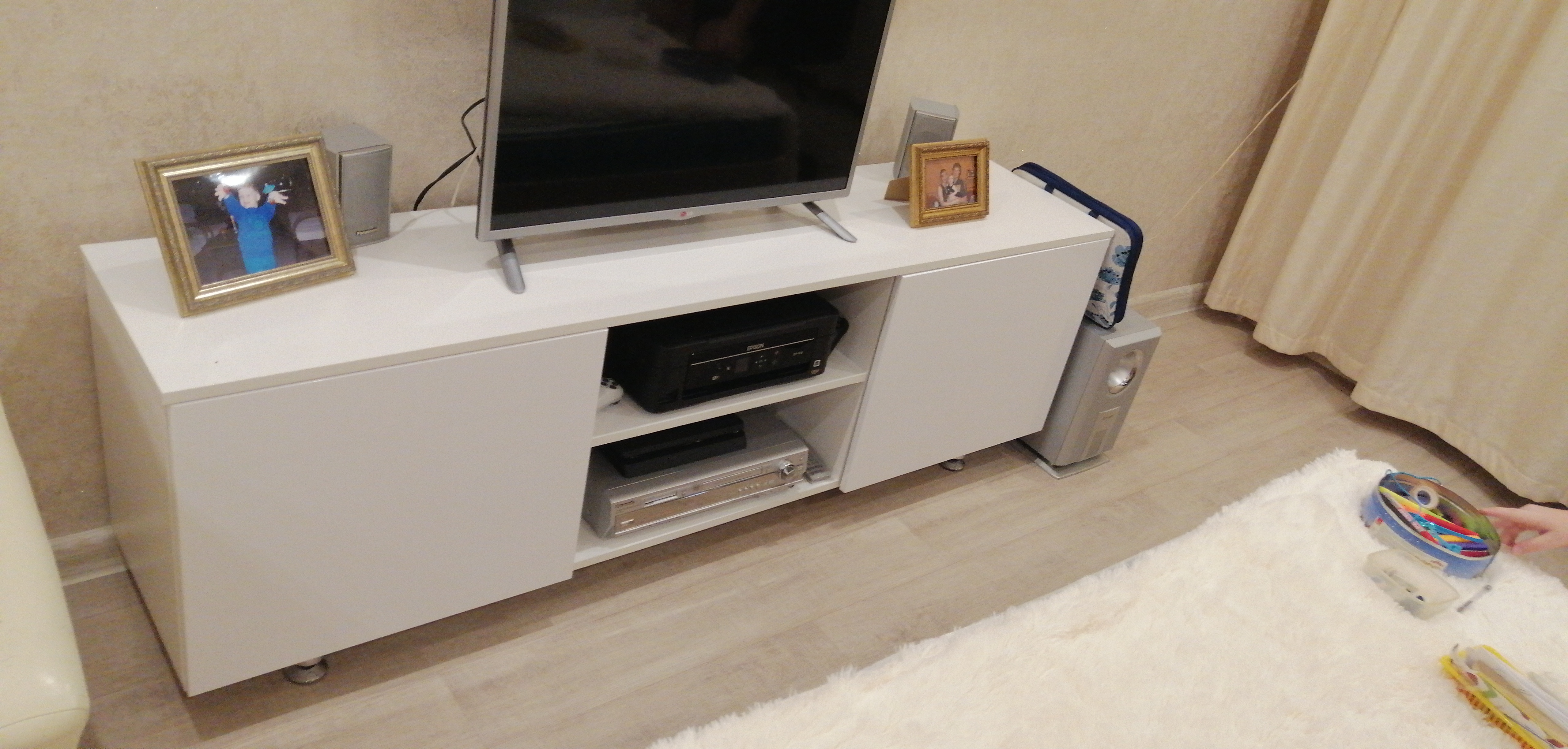 Заказала тв тумбу по приемлемой цене, Внешне на мой взгляд очень стильная , доставка быстрая, муж собрал сам инструкция на доступном языке, по качеству очень хорошая, используем около полугода проблем ни каких нет, стоит и радует нас!
