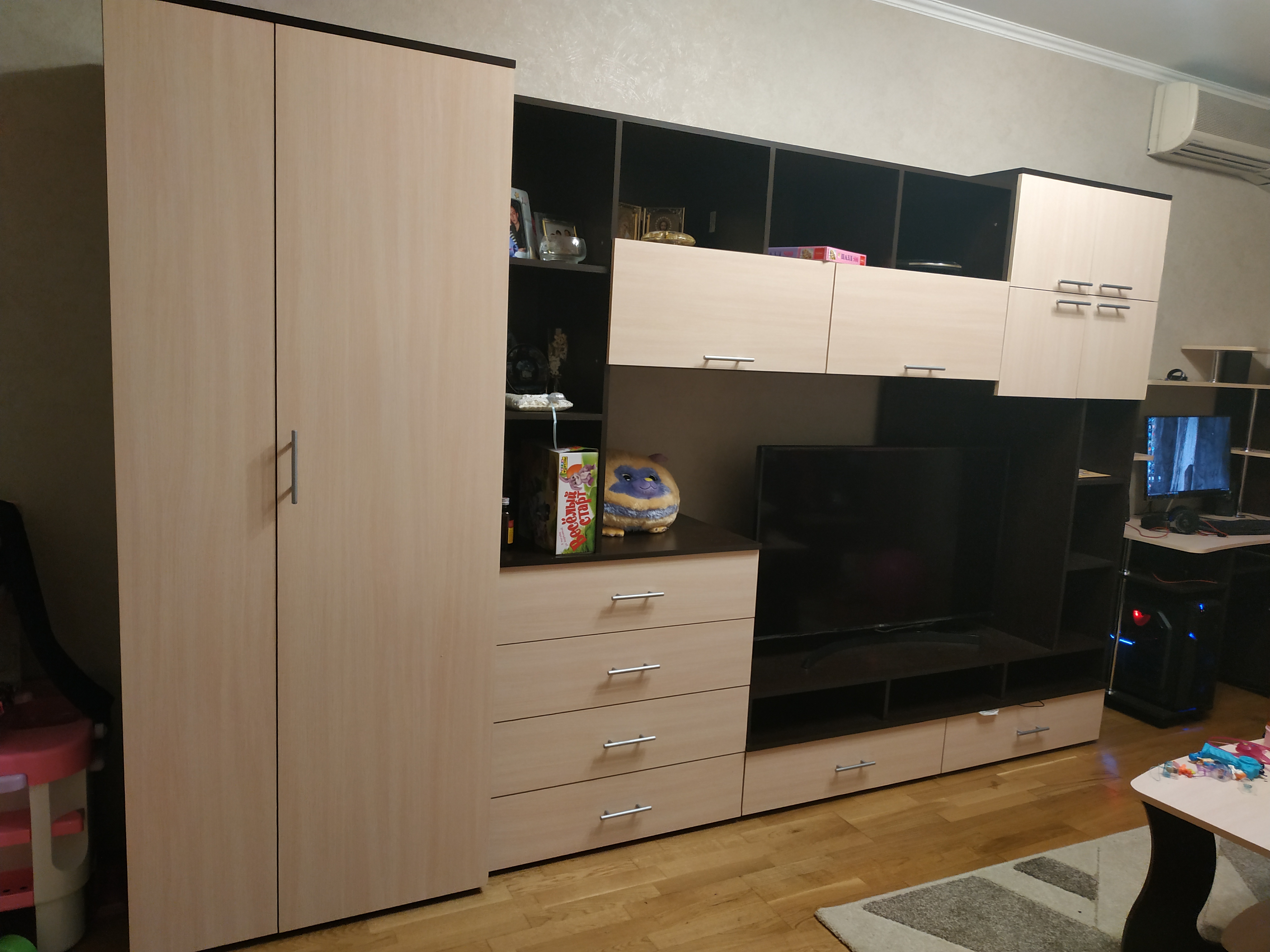 Шкаф, очень вместительный. В него можно зайти и там выбирать, что надеть)) Цена более, чем бюджетная. К компании претензий нет. Цвет, размер, наполнение всё подтверждали несколько раз.Доставка была ко времени, здесь всё чётко. Заказывала сразу несколько предметов, пересчитали места, проверили наличие фурнитуры. Пожалела, что заказала сборщиков из другой компании, т.к. не хотелось ждать 2 недели,лучше бы дождалась.Номер заказа 2057063