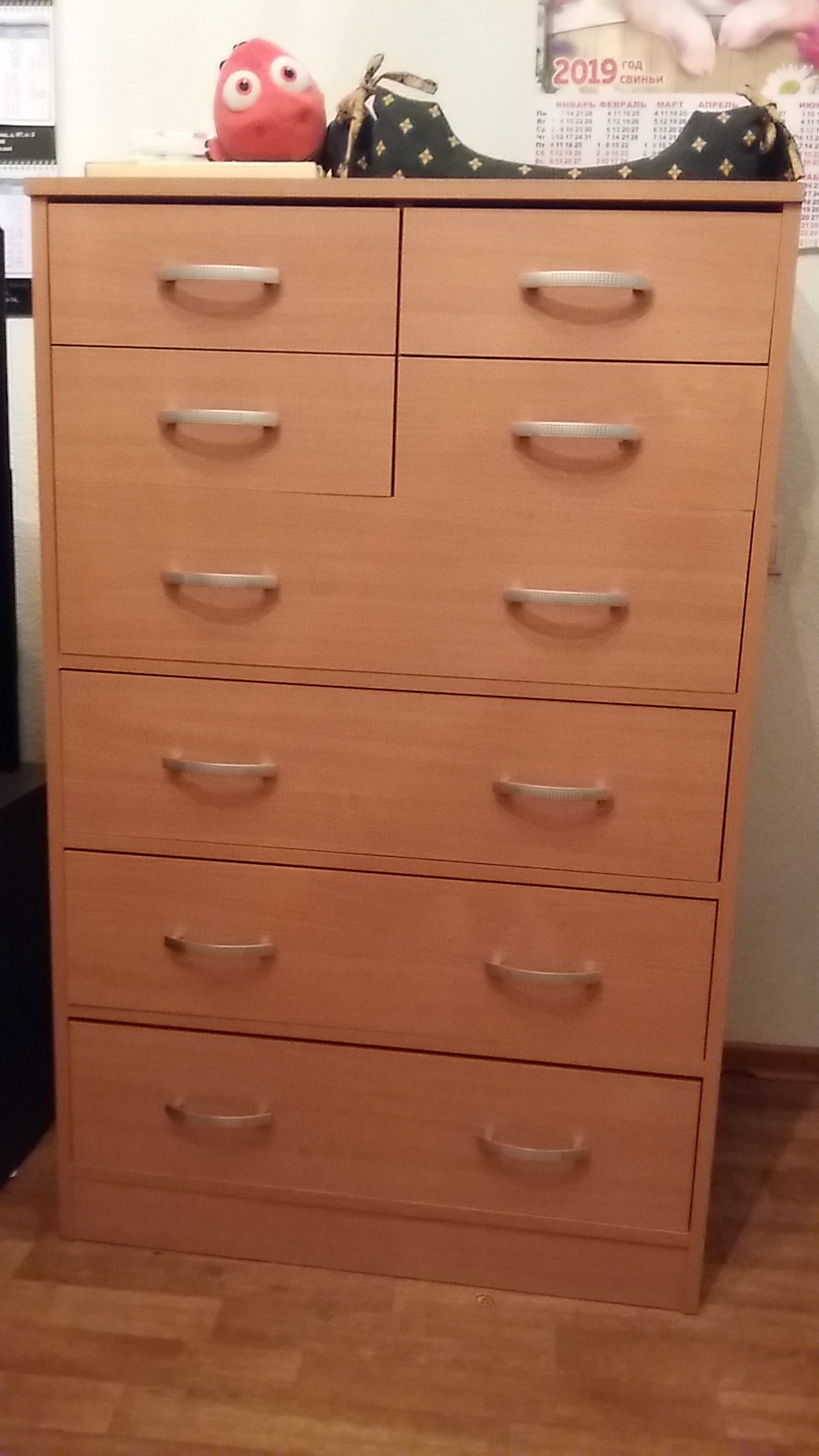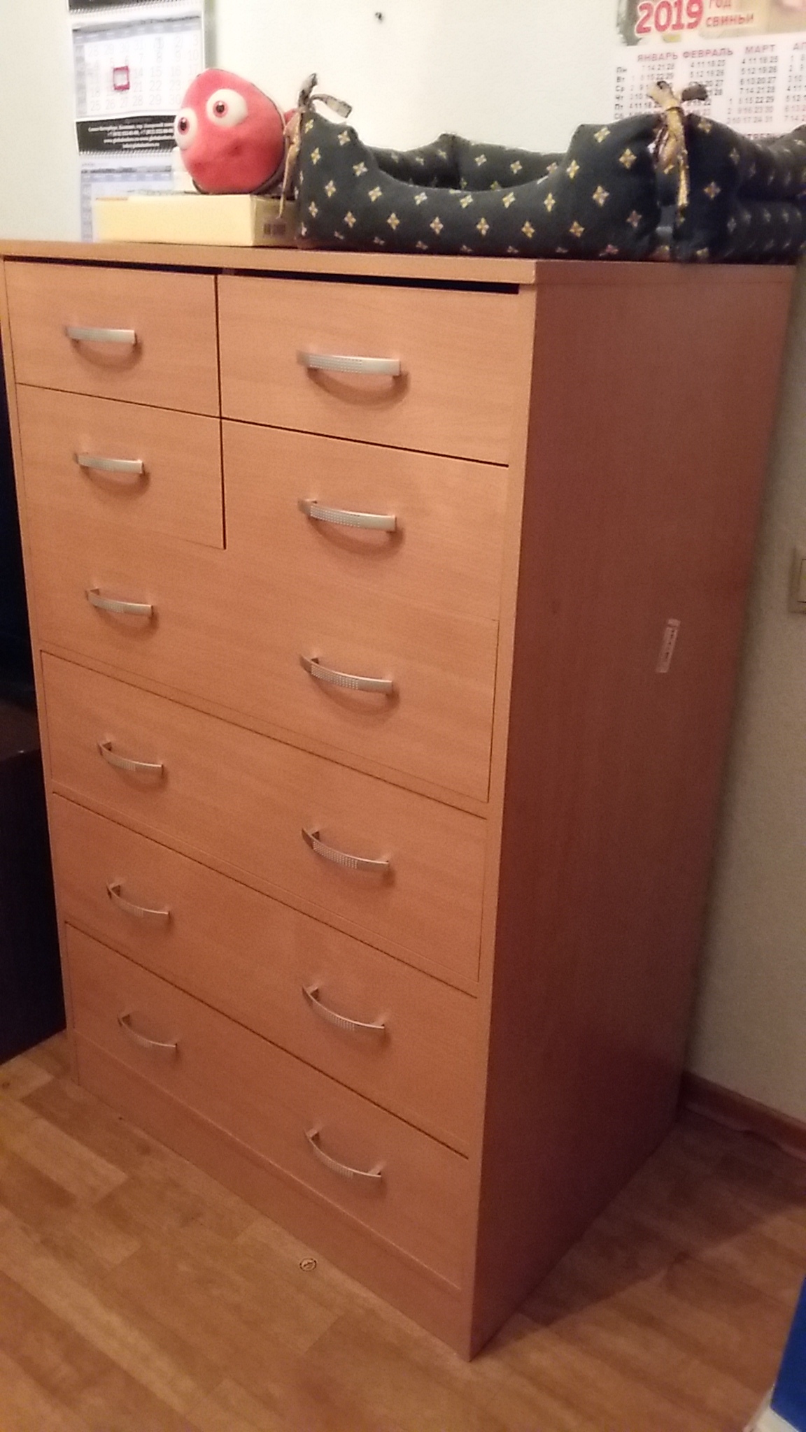 Комод покупали ребенку. Цвет бук Бавария. Ребенок доволен.  Подошел цвет к остальной мебели в спальне. Доставили как и обещали. Соотношение цена-качество отличное. Единственно, что инструкция по сборке состоит из одной картинки и списка деталей, без последовательности действий, поэтому вызывали мастера по сборке. К самому комоду претензий нет. Рекомендую!