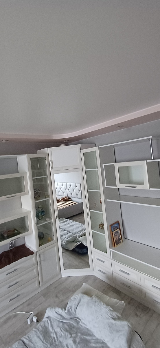 Заказ 00000989846, торговый стеллаж Кассиопея 2 BMS.Жене домой нужен был удобный вместительный стеллаж (витрина) со стеклами и зеркалом для собирающейся коллекции лягух и клованов.Выбрал этот, в моих размерах 2000х900х280, без замков.В итоге собственной сборки получилось то, что надо. Но, увы, не без танцев с бубном.Стеллаж очень тяжелый (зеркало + задняя стенка мебельный щит).Стекла, особенно тонкие дверцы с отверстиями под петли, приехали целыми. А на них даже дышать страшно...Стеклянные дверцы устанавливаются, как вкладные, снизу получается щель где-то 2 см, если не часто, то открывать удобно, и стекла не пачкаются.Подрезано всё отлично, никаких проблем.Освещения, идущего в комплекте, вполне достаточно.Минусы:На некоторых панелях кромка может выступать за геометрию на 1 - 1, 5 мм, приходится подрезать.Петель на нижние дверцы в наборе не оказалось, только 4 ответки. Поставил свои.Для петель на стеклянные дверцы стекло 3мм слишком тонкое, пришлось купить резиновые кольца (из автонабора колец, по 3р.), и взять более длинные саморезы для затяжки петли на стекле.Докупил А-образный силиконовый профиль (можно разрезанную трубку)  на торцы полок, иначе дверцы просто побьются.Зеркало испачкано чем-то белесым, что даже растворителем не оттирается до конца.В комплекте черный провод 220v... И что им делать? Ни одной выборки под провод, чтобы как-то незаметно опустить его хотя бы в нижнее отделение стеллажа, в конструкции не предусмотрено. Подсверлил, поставил тонкий прозрачный, врезал удобный микровыключатель.В целом всё устроило, но повозиться пришлось изрядно.