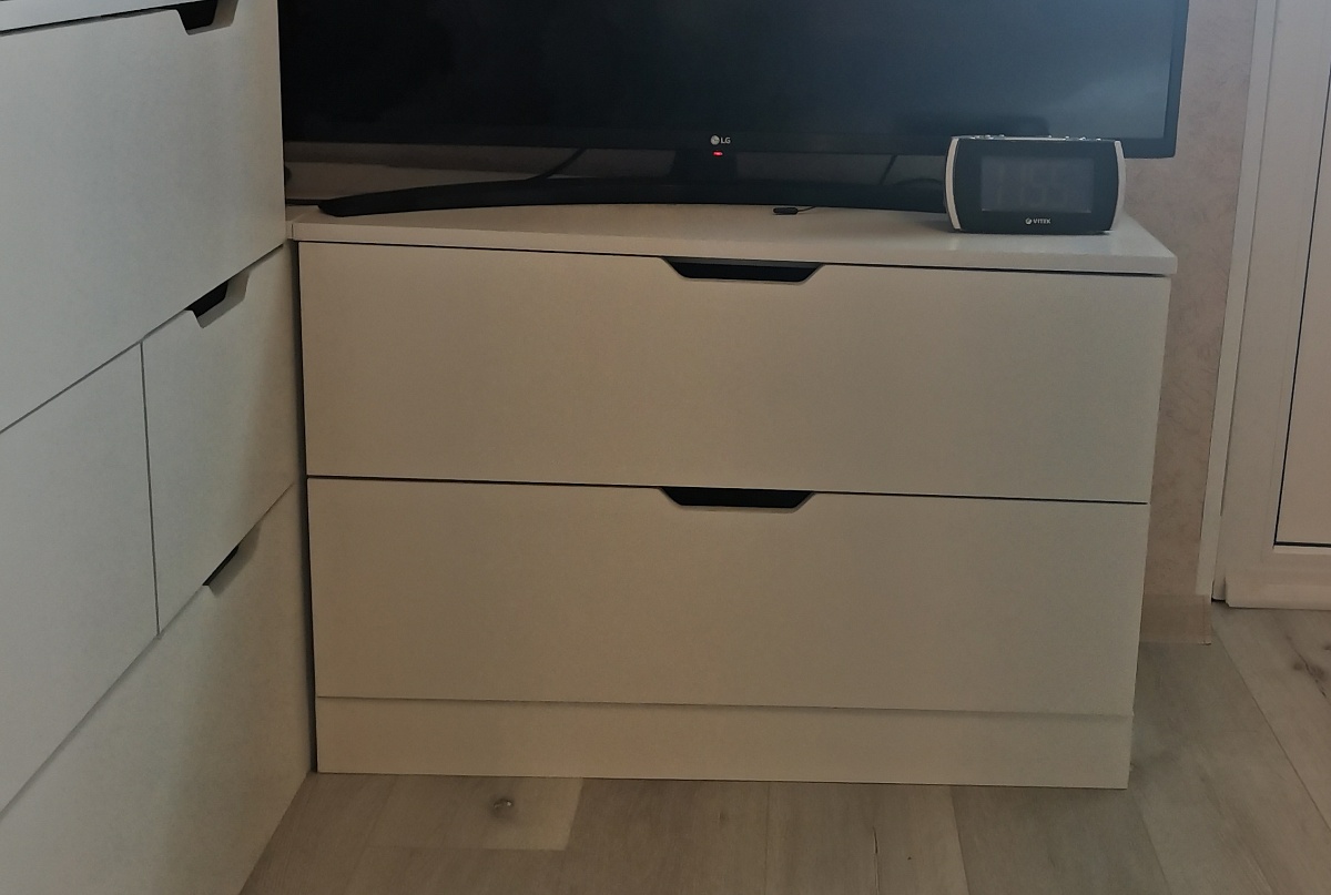 Заказ 00000972134 Комод Нордли Nordli 1. Очень удобно, что можно заказать по нужным тебе параметрам: цвет, размеры изделия, фурнитура. Затем позвонил менеджер, обсудили все детали. Были даны, как я считаю, нужные рекомендации по направляющим. Доставили быстро. Всё хорошо упаковано. Собирали сами. Инструкция по сборке сделана не очень удобно: одно большое готовое изделие с пронумероваными деталями (на самих деталях  цифры наклеены👍), если бы было пошагово - было бы🔥.  По качеству сделано добротно. Конструкция тоже продумана хорошо, не хлябает, не шатается. Ящики большие, вместительные. Вообщем всё понравилось. Фирму рекомендую.